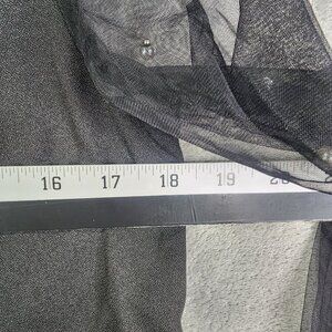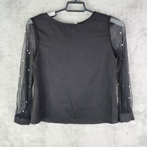 Women's Black Blouse Top With Sheer Pearl-Embellished Sleeves Round Neck S