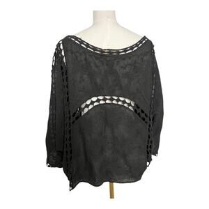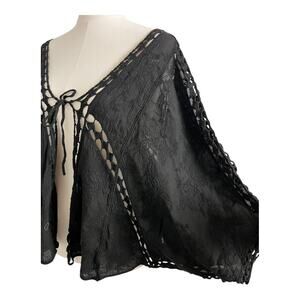 Womens Black Boho Cutout Top Floral Batwing Laser cut OS Tie Front Witchy