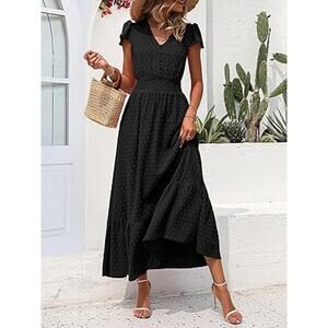 Summer maxi dress for women cap sleeve. Swiss dot dress for women is made of durable,stretchy and comfy fabric.Machine washable. Draped well,no wrinkles.S=US 4-6,M=US 8-10,L=US 12-14,XL=US 16-18,XXL=US 20.