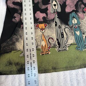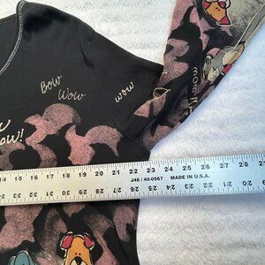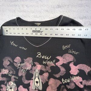Womens Black "Bow Wow" Dog Print Long Sleeve V-Neck Top Multicolor Casual Basic