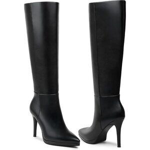 Classic Boots:This classic and simple platform Boots feature with pointed toe, Stilettos heel,and full size zipper.Simple design can show the leg shape and elongate your legs, also versitile for any outfit.