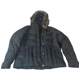 Women’s Black Columbia Winter Coat • Hooded • size Large • Detachable fur • Snap over Zip closure