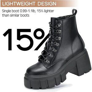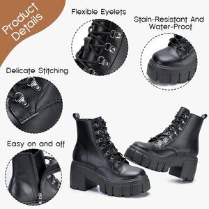 ⚡Women’s Black Combat Lightweight Side Zipper Ankle High Heel Chunky Boots