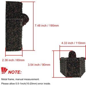 ●Size & Capacity.● This is a Magnet closure evening bag. Color: Black. Dimensions: L7.48 x H2.36 x W4.33 inches, about 19x 6x 11cm. It has a small capacity, can NOT hold a cell phone, but it can hold keys, credit cards, lipsticks. Charming and dazzling appearance, about 1.83 pounds (0.83kg), maybe a litter heavy, but it's very special and eye-catching.