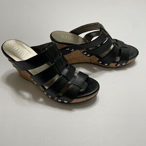 Womens Black Cork Wedge Sandals With Strappy Design By A.N.A. Size 8M