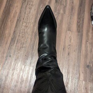 Black Womens Knee High Cowboy Boots with pull up zipper and pointed toe