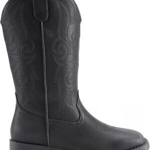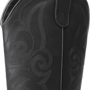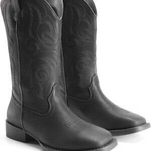 Women's Black Cowboy Cowgirl Boots with Embroidery and Chunky Low Heel