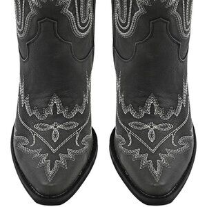 Fashion design: western boots decorated with Embroiderded , comfortable low block chunky heels and adjustable back lace up, Pull on style