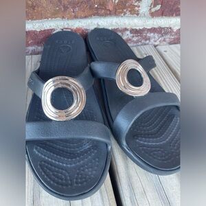 Women’s Black Crocs Sanrah Beveled Circle Sandals Size 6 Lightweight