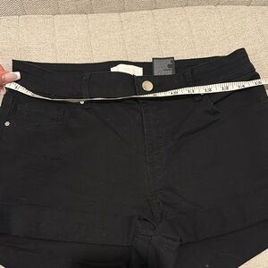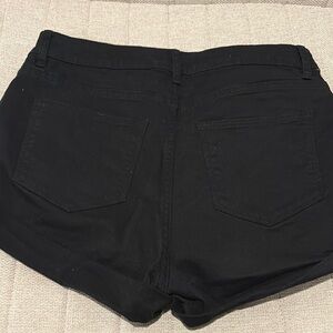 Stylish and versatile black denim shorts perfect for any casual outing. Comfortable fit with a classic design. H&M. High rise. Foldable cuffs on the bottom.