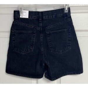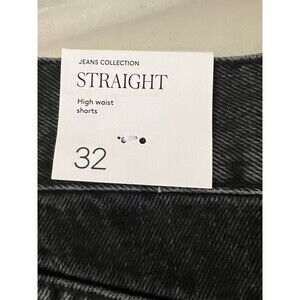 Womens Black Denim Shorts Size 1 Mango MNG Zaida Straight High Waist Summer