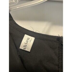 This Women's Black Dotted Swiss lined Size XL Romper is a stylish and versatile piece perfect for any casual occasion. The V-neckline and short sleeves give it a modern and chic look, while the chiffon fabric adds a touch of elegance. The black color and solid pattern make it easy to pair with different accessories for a variety of outfits. The romper is lined for added comfort and has a hook & eye closure for a secure fit. Whether you're going out for a party, traveling, or simply lounging in the city, this romper is a trendy choice for your wardrobe.