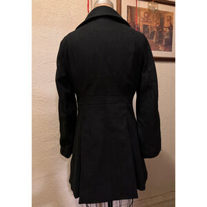 Women's Black Double Breasted Flared Peacoat with Pearl Buttons Pockets Size L