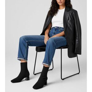 Women's Black Dressy Comfy Knit Sock Square Toe Chunky Heel Slip On Booties