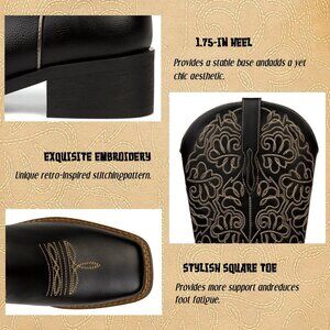 Stylish Embroidery:These womens cowboy boots feature stylish floral embroidery designs, adding a touch of western flair and feminine look to your footwear.