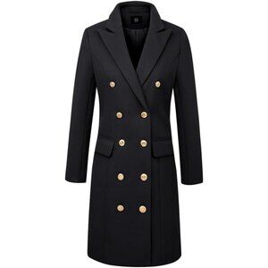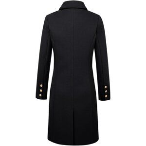 Womens Black Fall Winter Wool Coats Double Breasted Midi Peacoat Trench Coats