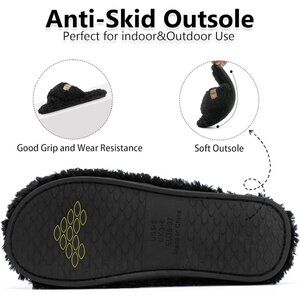 ⚡Women’s Black Faux Fur Cozy Fuzzy Cross Band Slippers Indoor House Shoes