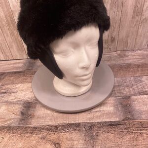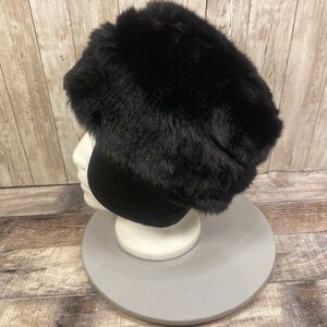 Women’s Black Faux Fur Hat Crown Cap Ear Flaps Small