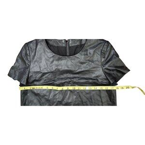 This Women's Black Faux Leather Dress in size M features a short sleeve, mini length, and mod style with pockets and trim details. The solid black color and zip closure make it perfect for a party or cocktail occasion. Made from faux leather, this dress is ideal for the winter, fall, and spring seasons. With a vintage-inspired vibe and a regular size fit, this chic and stylish dress is a must-have for any fashion-forward woman.