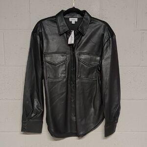 Women's Black Faux Leather Shacket Size Medium NWT, Soft Grunge, Minimalist
