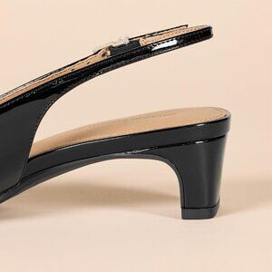 ⭐ Women's Black Faux Patent Leather Slingback Block Heel