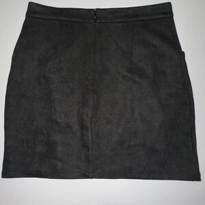 Women’s Black Faux Suede Mini Skirt Size L Lace Up Front Zipper Back