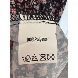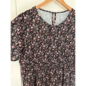 New with tags. Women’s black floral boho dress featuring a scoop neckline, short sleeves with ruffle trim, and a smocked waist for a comfortable fit. Lightweight 100% polyester fabric.