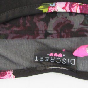 Women's Black, Floral Print, Pullover, Stretch Polyester Top - Size S - DISCREET