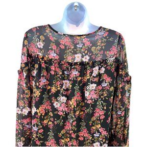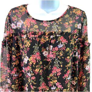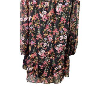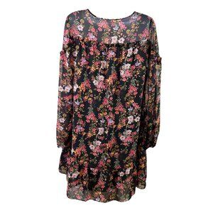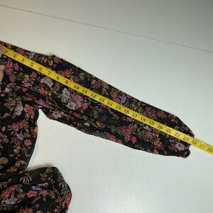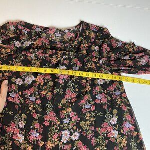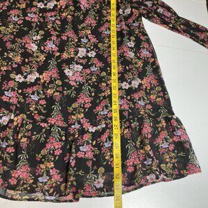Womens Black Floral Shift Dress Sheer Neckline Sleeves Boho Whimsigoth Sz M