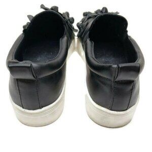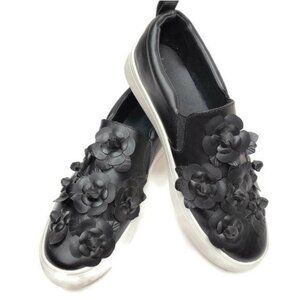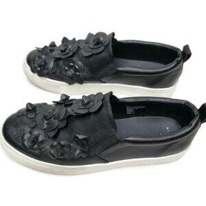 Womens Black Floral Slip-On Sneakers Size 9.5 Leather Upper With Rubber Sole
