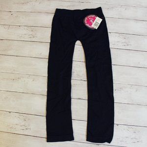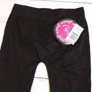 These women's solid black basic footless tights are capri length. They are seamless and are light weight and extremely soft. They are new with tags.