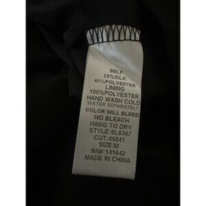 Elevate your wardrobe with this stunning Anthropologie She + Sky women's blouse. The black chiffon fabric is lightweight and breathable, making it perfect for any season. The wide straps and bell sleeves add a touch of bohemian and peasant vibes, while the formal round neckline and button accents give it a classic look. This versatile blouse is ideal for travel, casual outings, workwear, and business attire. The pullover closure and easy care make it convenient for everyday wear. Hand wash only to maintain the quality of the silk polyester material. Available in size M, this regular fit blouse is a must-have for any fashion-forward woman.