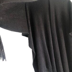 Womens Black Fringed Soft Sweater Cardigan Shawl Wrap One Size