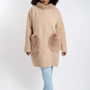 Women's Black Fur Hooded Sweater Coat - Kara Chic