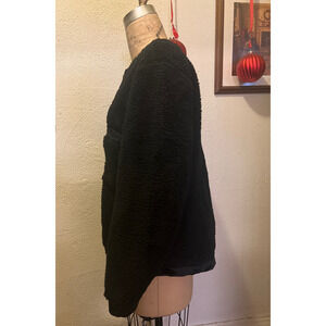 Women’s Black Fuzzy Faux Fur Velvet Trim Button Down Cardigan Sweater Size L