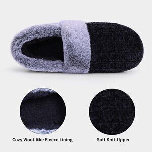 Warm Winter Knit Slippers: The chenille knit breathable upper and fuzzy wool-like plush shearling from lining to collar wraps your ankle providing all-around coverage of the whole foot that keeps your feet cozy in this winter.