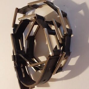 Womens Black Genuine Leather Belt with Silver Metal Links Edgy Punk Goth Sz.M/L