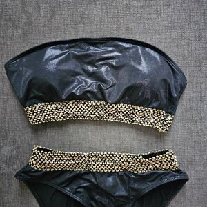 Women's Black & Gold Contrast Bandeau High Waist- 2 Piece Bikini Set Size Large