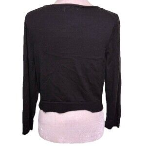 Women’s Black Gold Grommet Toggle 3/4 Sleeve Cropped Cardigan Classic Preppy Lg