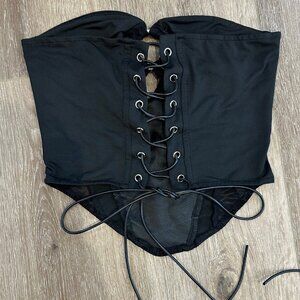 Women's Black Goth Grunge Lace Up Corset Top Size XS