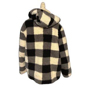 Womens Black Gray White Checked Fleece Long Sleeve Warm Hoodie Jacket Xl