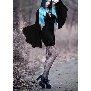 * 【Matching & Occasions】The witch dress can be match with high heels and a necklace for the bare neck, the match with the beyond knee design will make you more feminine, the gothic black dress is a cool halloween costumes so that suitable for participate in halloween theme party, cosplay, daily leisure parties, dating, cocktails witch costume and so on.
