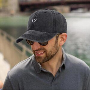 Feature: Heart Hat, vintage hat,washed baseball cap,unisex hat,cotton baseball cap,funny hats for women,beach baseball cap,retro look; A low profile fit with an unstructured crown; 6 panels; Inner sweatband.