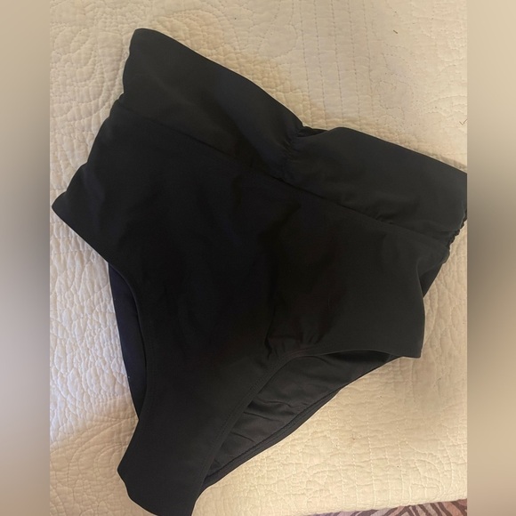 Stylish and comfortable high-waisted swim bottom in classic black. Perfect for a sleek beach look.