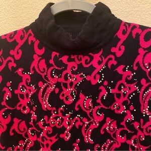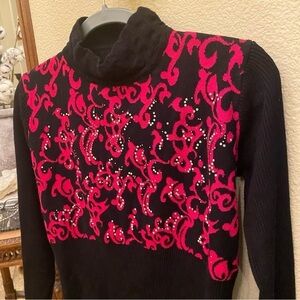 Women’s Black & Hot Pink Embellished Patterned Turtleneck Sweater Size S/M