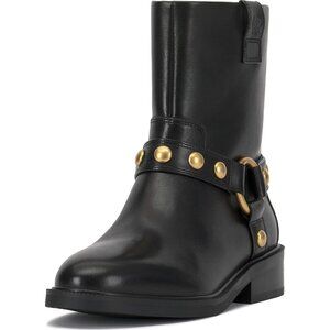 ⚡Women's Black Imported Western Pointy Toe Mid Calf Chunky Heel Biker Boot