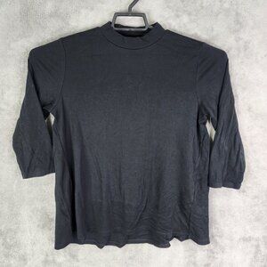 Womens Black J. Jill Top Mock Neck 3/4 Sleeve Cotton Modal Blend Stretch Size S