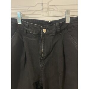 These Women's Black Jeans in size 6 feature a solid pattern with a zip closure and belt loops. Made from a blend of spandex and cotton, these jeans offer stretch and comfort for a regular fit. The 5-pocket design adds functionality to the tapered style, making them a versatile and classic addition to any wardrobe. Perfect for everyday wear or paired with a variety of tops and shoes, these black jeans are a stylish and practical choice for women looking for a fashionable yet comfortable option.