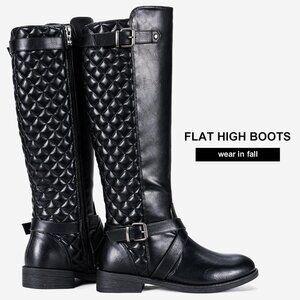 These women's knee high motorcyle riding boots with instep adjustable metal buckle straps for easy on and off