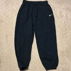 Classic black Nike sweatpants for women. Features a white logo and drawstring. Ideal for casual wear.